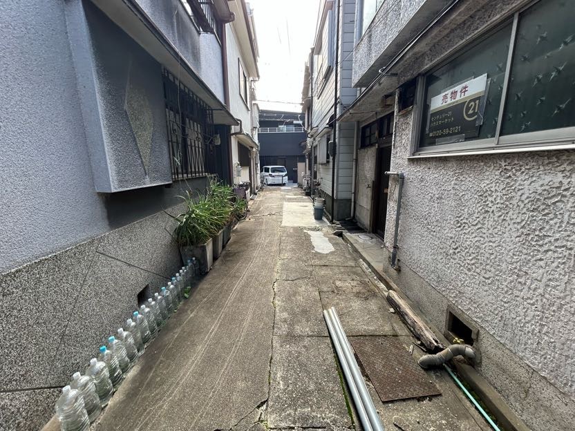 建物登記なし、連棟物件、再建築不可、雨漏りあり。