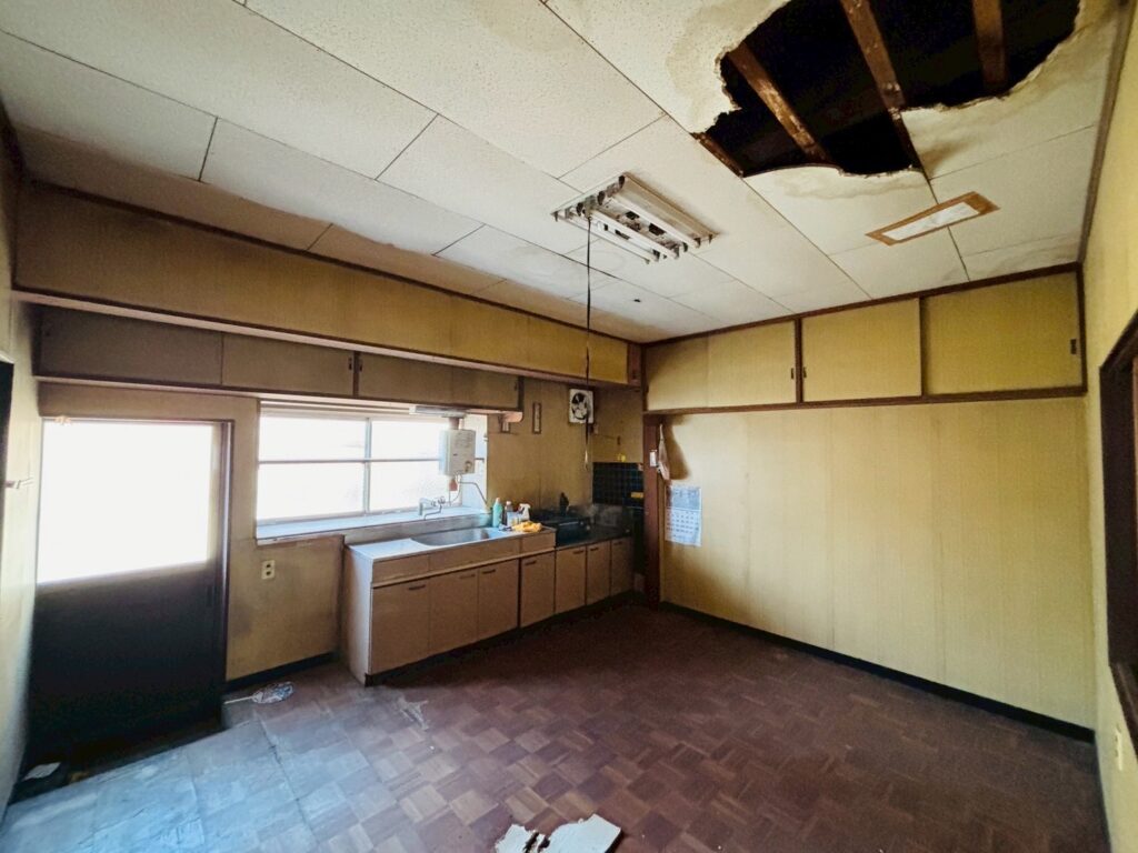 天井が雨漏れで抜け落ちたキッチン、使われなくなった井戸が残る土間、物が散乱した納屋や、経年劣化が進んだ和室——。