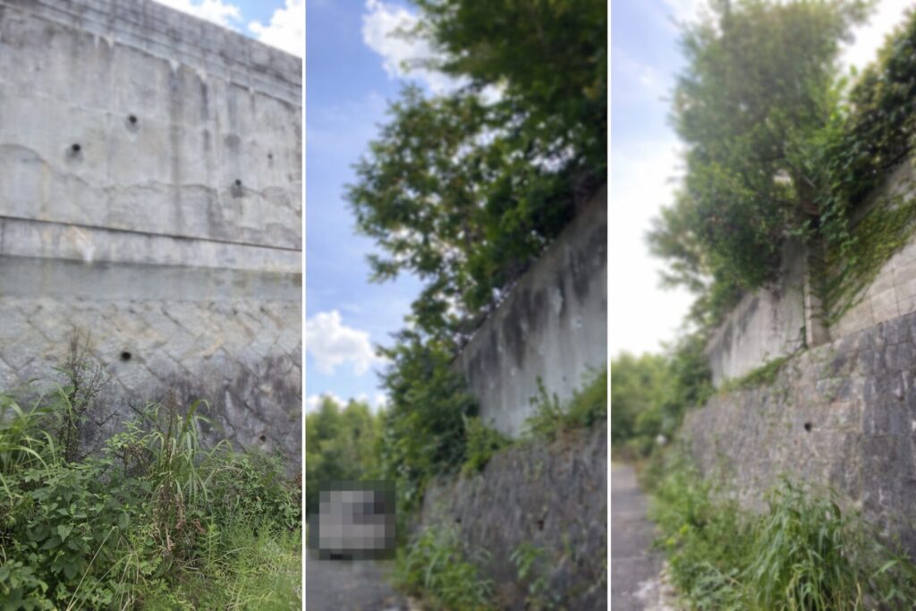 現地は擁壁の圧迫感が非常に強く、安全面や再建築時の制限が懸念される状況でした。